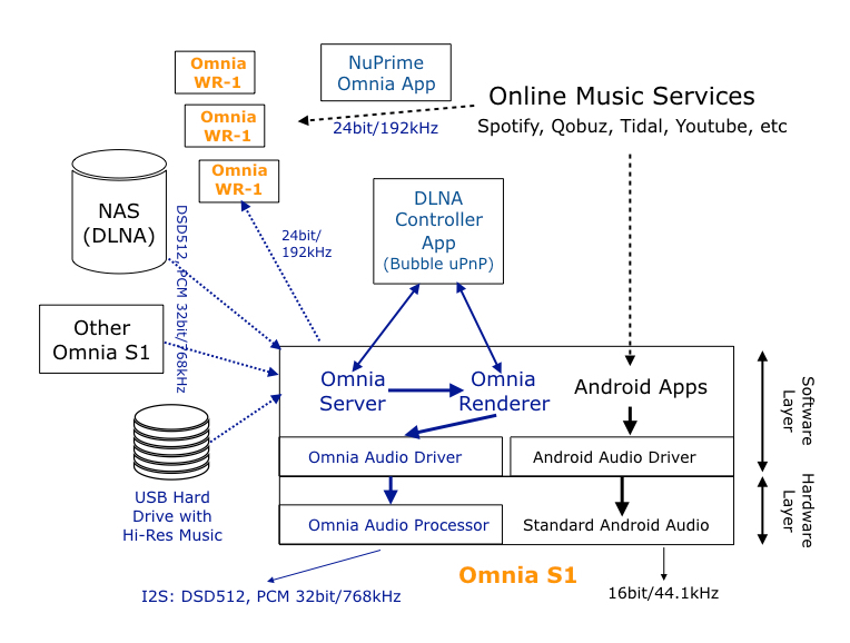 Server and rendering machine in one Usually, these types of solutions are very expensive and directed exclusively to the hi-end market. The Omnia S1 offers hi-end performance at a price that opens new opportunities for anyone who wants to polish to perfection their stereo system based on streaming or files. The Omnia S1 offers three operation modes :