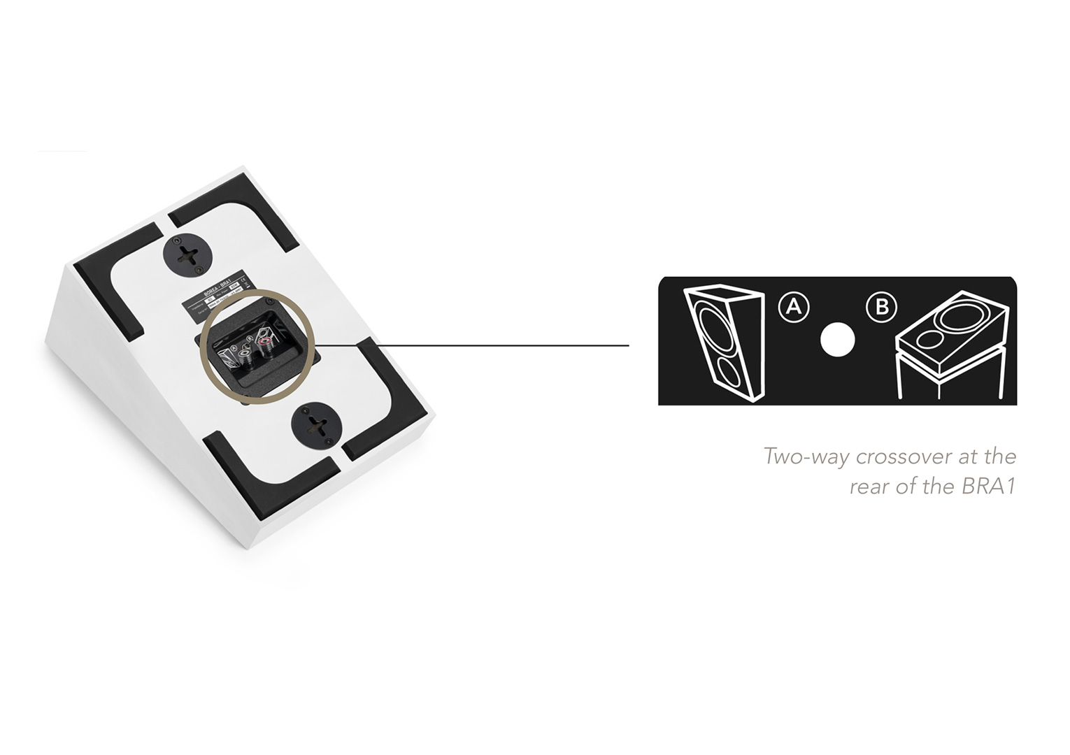 Korzystając z dedykowanego systemu mocowania głośniki BRA1 umieszczamy w pomieszczeniu na tylnych lub bocznych ścianach. Dzięki ukośnemu przodowi, BRA1 pozwalają na precyzyjne kierowanie fal dźwiękowych bezpośrednio w kierunku słuchacza (dyspersja bezpośrednia).