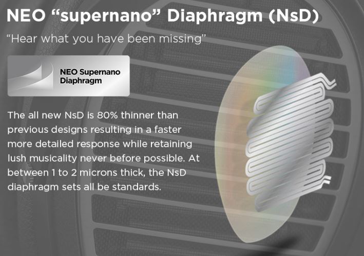 Nowe wydanie słuchawek planarnych HiFiMAN Ananda Stealth Magnets oparto na ultracienkiej membranie NEO Supernano, w skrócie NsD, która jest o 80% cieńsza od poprzednich konstrukcji. Membrana NsD, która ma jedynie pomiędzy 1 a 2 mikrometrami grubości, pozwala na błyskawiczną odpowiedź impulsową i skutkuje m.in. niezwykle szczegółowym, muzykalnym brzmieniem bez odczuwalnych zniekształceń.