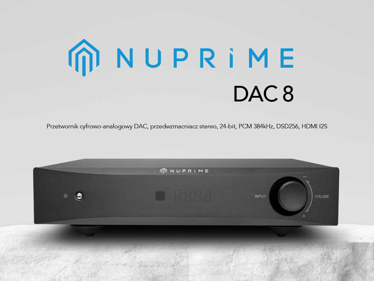 NuPrime DAC-8 to przystępny cenowo wysokiej klasy przetwornik cyfrowo-analogowy, a zarazem przedwzmacniacz, do którego można podłączyć końcówki mocy lub kolumny aktywne. Przeznaczony dla audiofili i melomanów, dzięki układowi D/A ESS ES9018Q2C oferuje nieprzeciętne, spójne brzmienie o analogowym zabarwieniu bez cyfrowego nalotu.