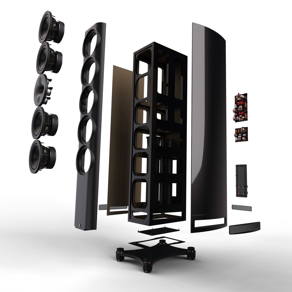 Model PERLISTEN™ S7t Limited Edition zyskał też nowe wykończenie. Boki kolumn zdobią panele z błyszczącego włókna węglowego, co dodatkowo służy usztywnieniu obudowy.