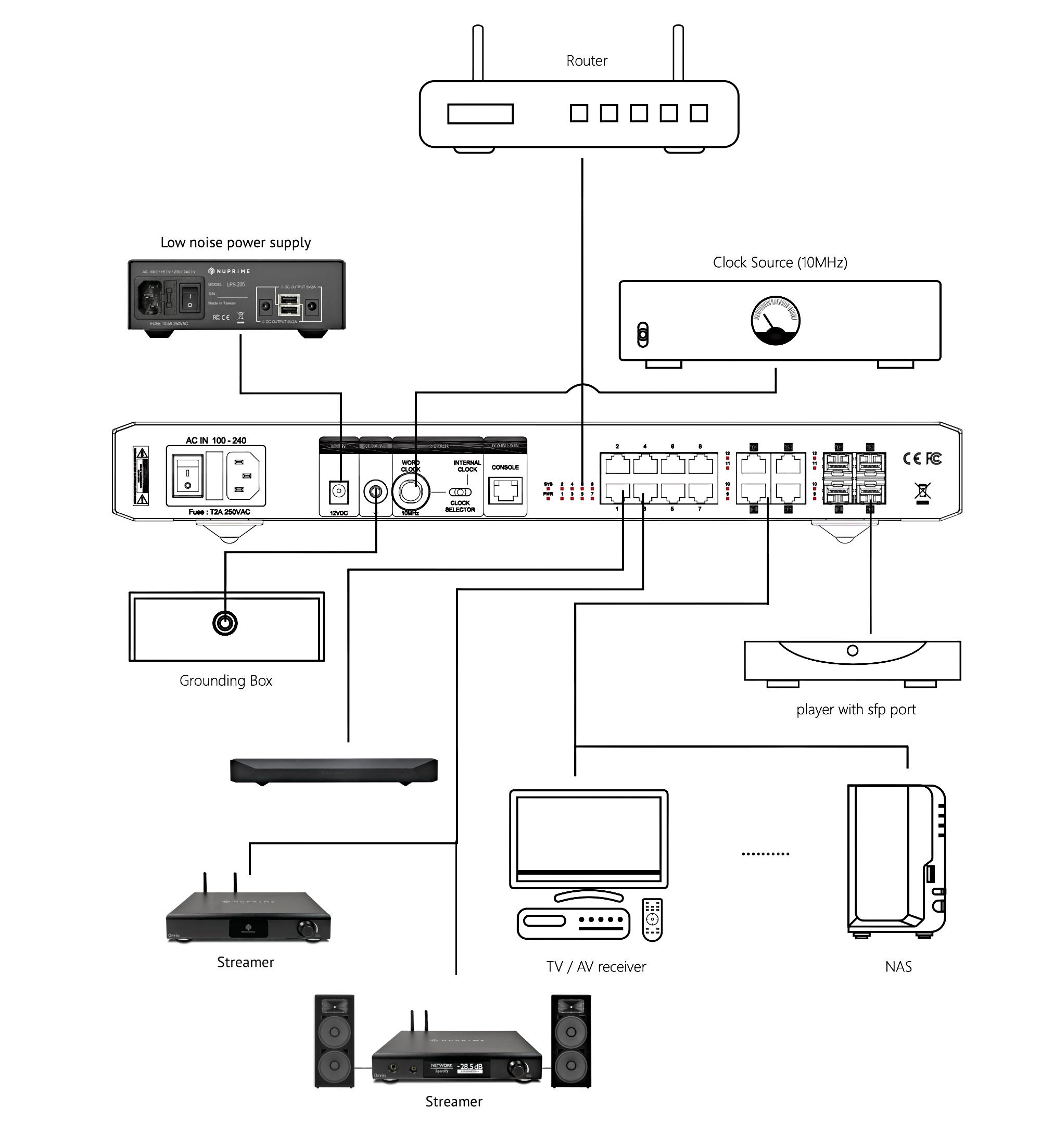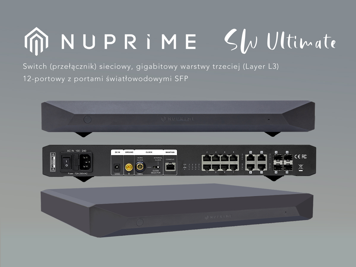 NuPrime SW Ultimate to 12-portowy przełącznik sieciowy warstwy trzeciej, który dba o to, by sygnał dotarł na miejsce dokładnie taki, jaki opuścił źródło – czysty, stabilny i gotowy do grania w najwyższej jakości.