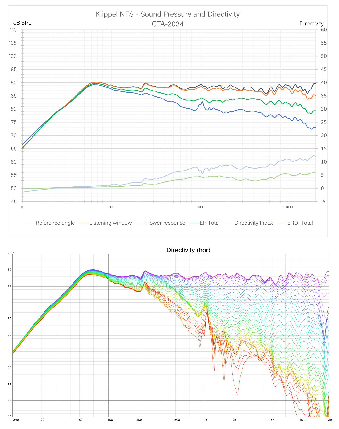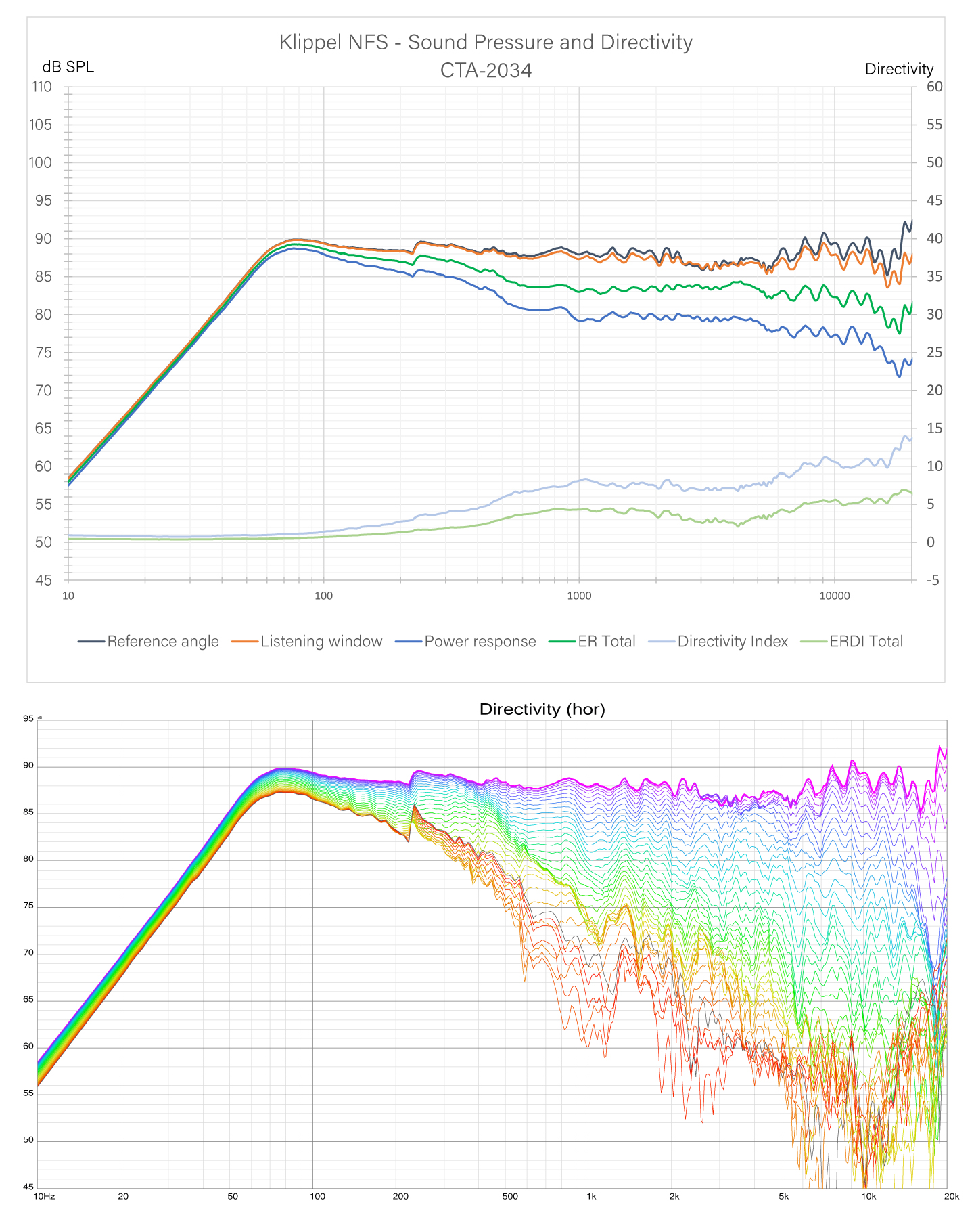 Cała seria została przetestowana i zoptymalizowana w systemie pomiarowym Klippel NFS, a charakterystyki kierunkowe i indeksy dyspersji (ER, DI) potwierdzają jej przydatność zarówno w systemach stereo, jak i w instalacjach wielokanałowych, gdzie istotna jest kontrola rozpraszania i spójność tonalna między kanałami.