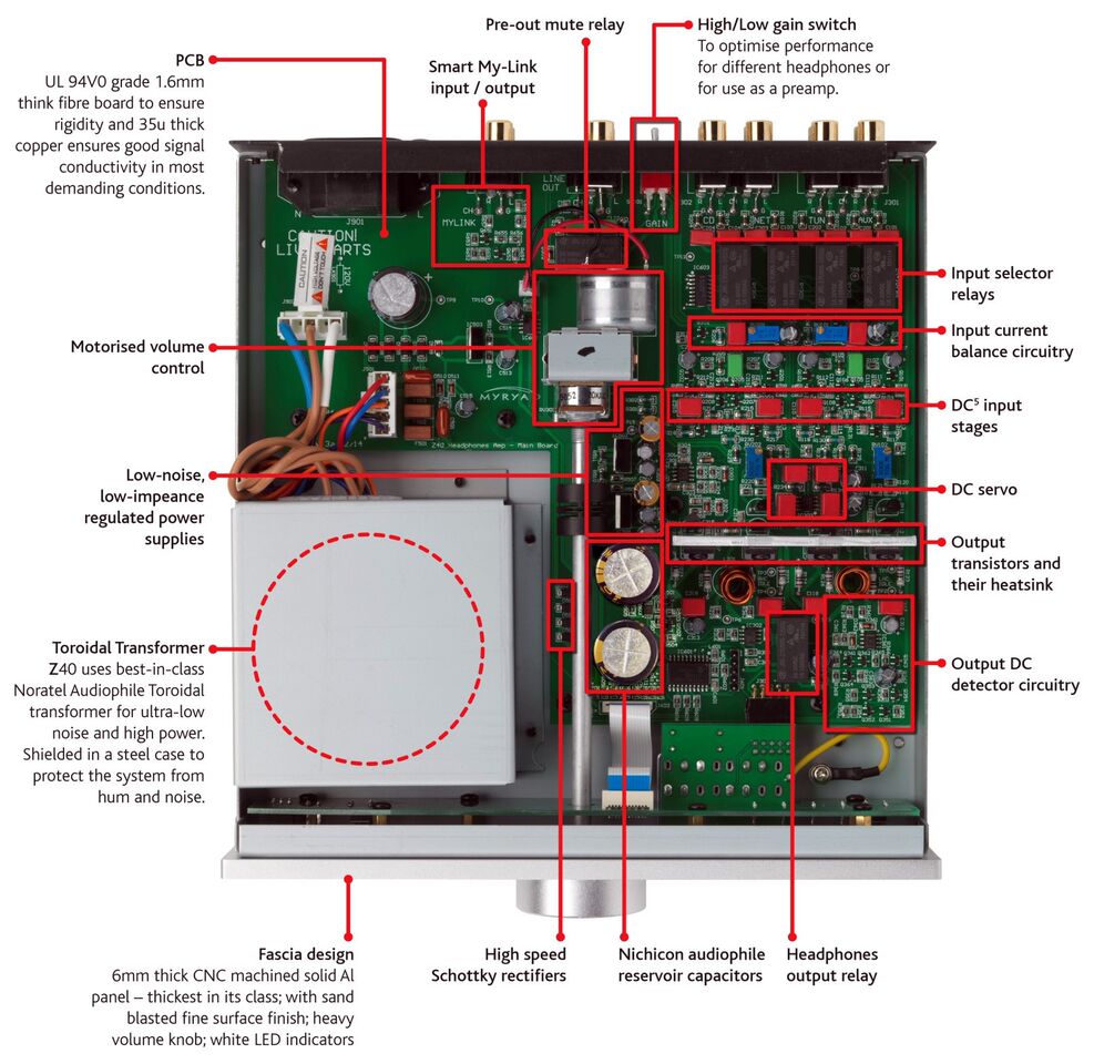 Myryad Z40 jest w stanie wysterować wszystkie rodzaje słuchawek (oprócz elektrostatycznych) na dowolnych poziomach głośności przy niesłyszalnym poziomie szumów i zniekształceń. Wyposażono go w 2 wyjścia jack, więc korzystanie słuchawek zenie musi być już zajęciem dla samotników.